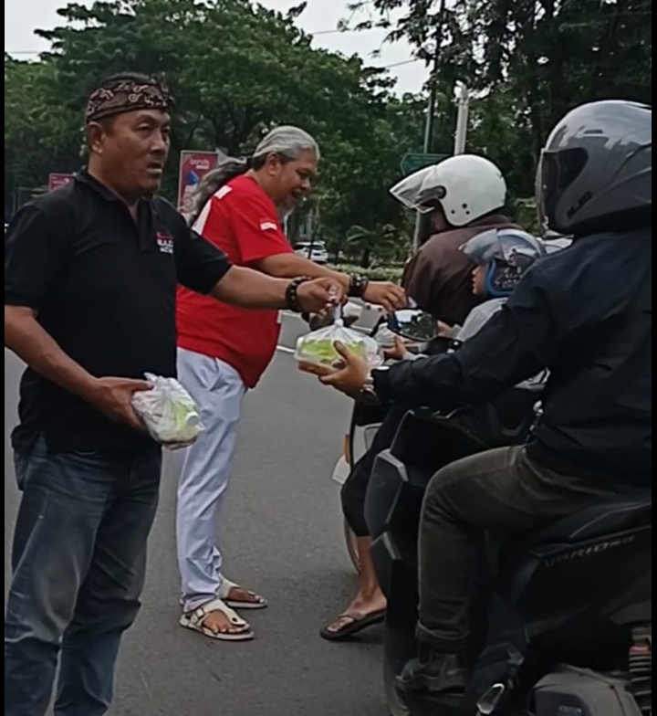 Tim Takjil MAKI Jatim secara langsung turun ke jalan untuk membagikan takjil kepada pengendara roda dua maupun roda empat.