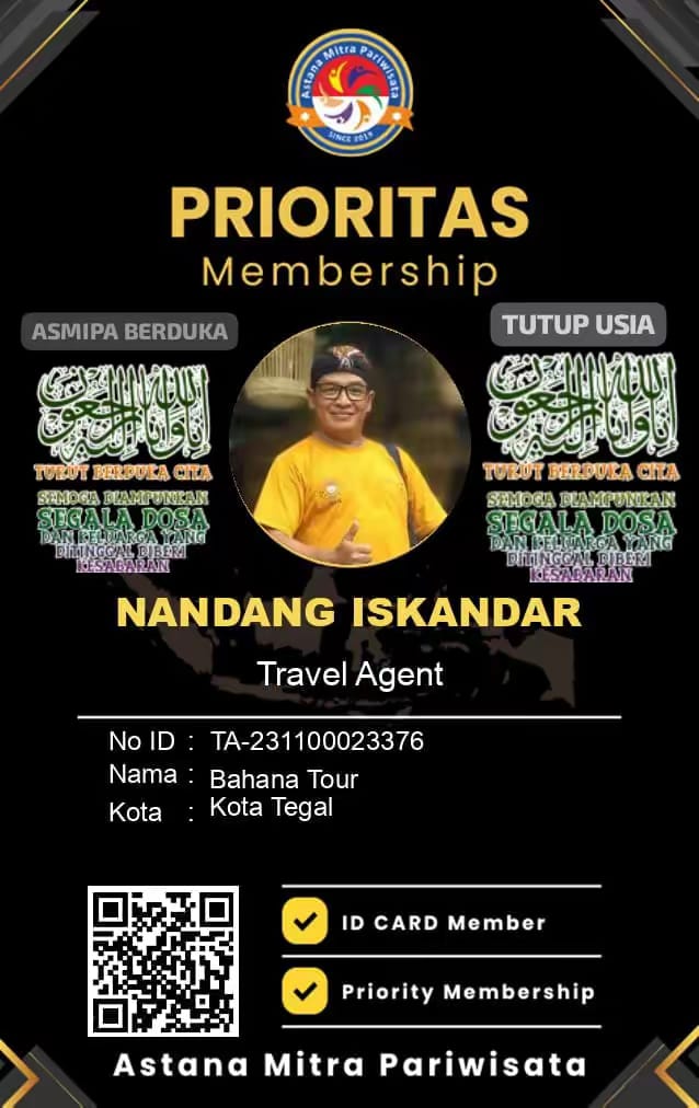 Pekalongan, 9 November 2025 — Keluarga besar ASMIPA (Astana Mitra Pariwisata) menyampaikan rasa duka cita yang mendalam atas wafatnya salah satu anggota keluarga besar DPD ASMIPA Jawa Tengah, almarhum Bapak Nandang Iskandar yang merupakan member prioritas ASMIPA.