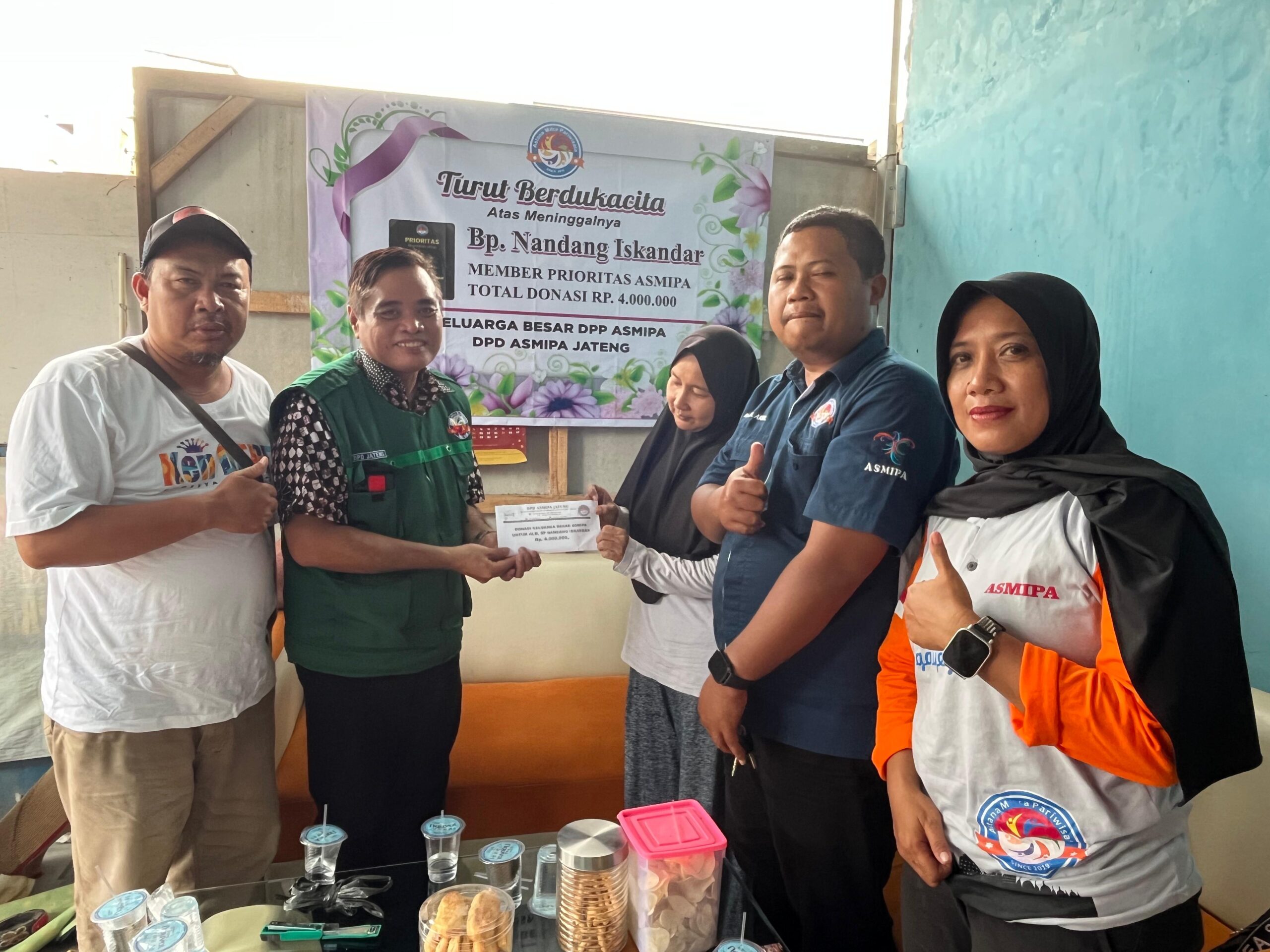 Pada kesempatan tersebut, pengurus DPD ASMIPA Jawa Tengah menyerahkan hasil donasi sebesar Rp4.000.000 kepada istri almarhum Bapak Nandang, sebagai bentuk kepedulian dan solidaritas dari keluarga besar ASMIPA.