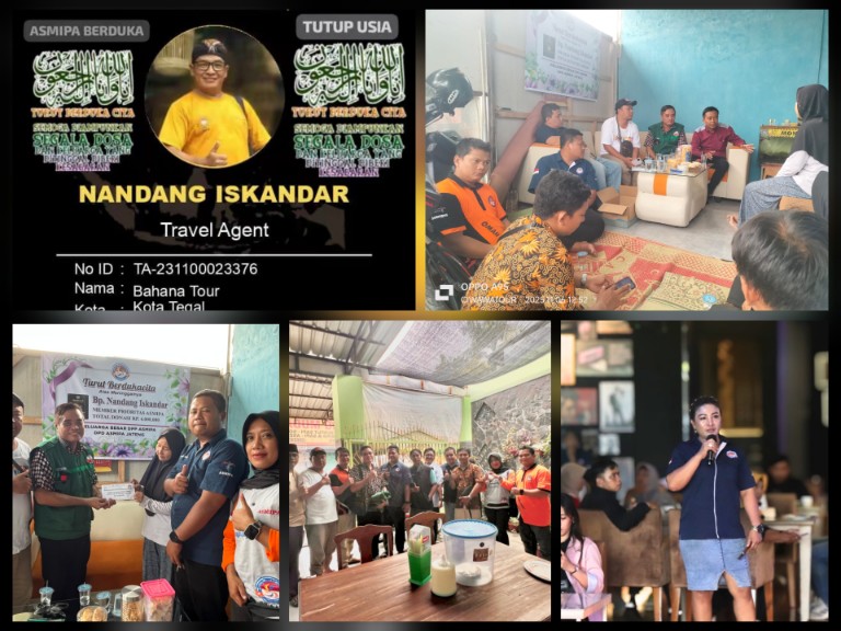 Pekalongan, 9 November 2025 — Keluarga besar ASMIPA (Astana Mitra Pariwisata) menyampaikan rasa duka cita yang mendalam atas wafatnya salah satu anggota keluarga besar DPD ASMIPA Jawa Tengah, almarhum Bapak Nandang Iskandar yang merupakan member prioritas ASMIPA.