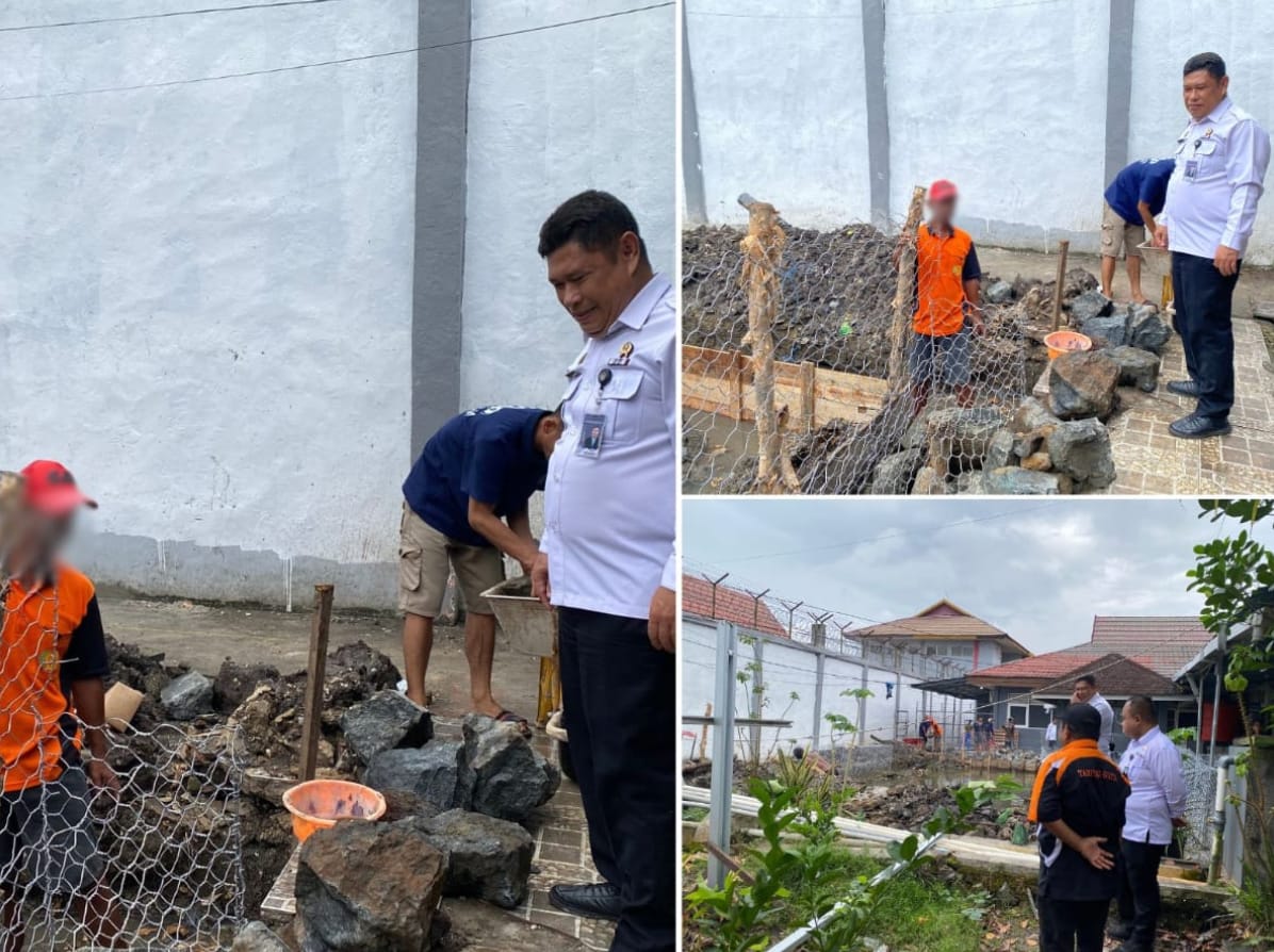 Kepala Lapas Kelas IIA Banjarmasin, Akhmad Herriansyah, meninjau langsung progres pembangunan kolam budidaya perikanan yang dikerjakan oleh Warga Binaan Pemasyarakatan (WBP), Selasa (16/09).