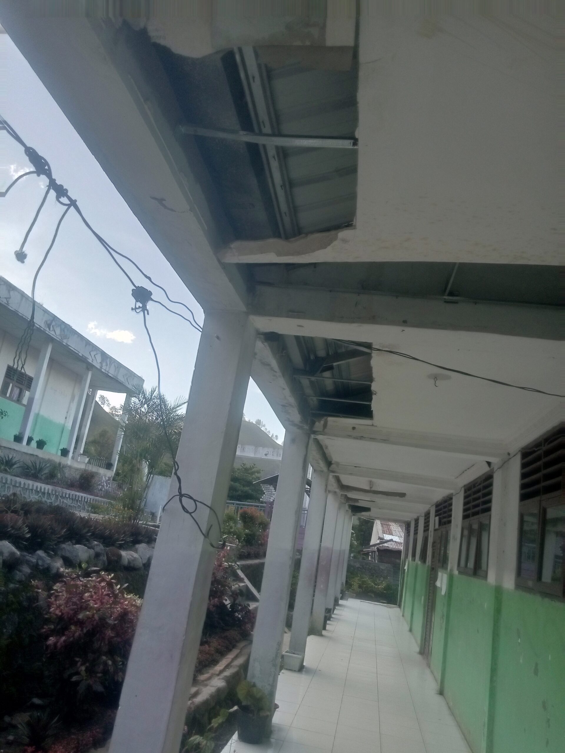 Dari pantauan awak media di lokasi, terdapat beberapa titik bangunan yang kondisinya sangat tidak wajar, di mana atap plafon terlihat jebol akibat resapan air dari permukaan seng yang di duga bocor ditambah usia gedung sekolah yang butuh di renovasi demi kenyamanan anak-anak didik saat belajar mengajar.