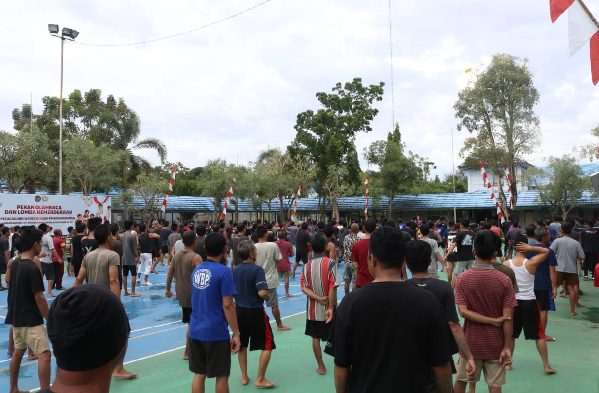 Senam aerobik dipandu oleh instruktur dari dalam Lapas dengan iringan musik yang enerjik. Ratusan warga binaan dari blok A, B, dan C mengikuti kegiatan dengan penuh antusiasme. Terlihat semangat kebersamaan dan keceriaan terpancar selama jalannya kegiatan.