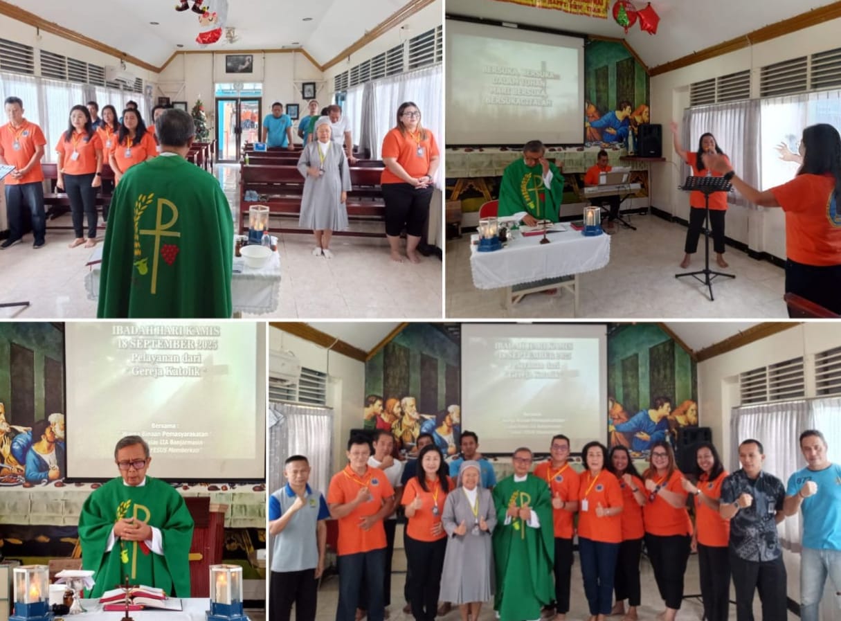 Lapas Kelas IIA Banjarmasin kembali menggelar ibadah rutin bulanan pelayanan dari Gereja Katolik, Kamis (18/09), bertempat di Gereja Oikumene Lapas Banjarmasin. Ibadah ini diikuti oleh seluruh Warga Binaan Pemasyarakatan (WBP) Kristiani bersama Pembina Gereja Oikumene.