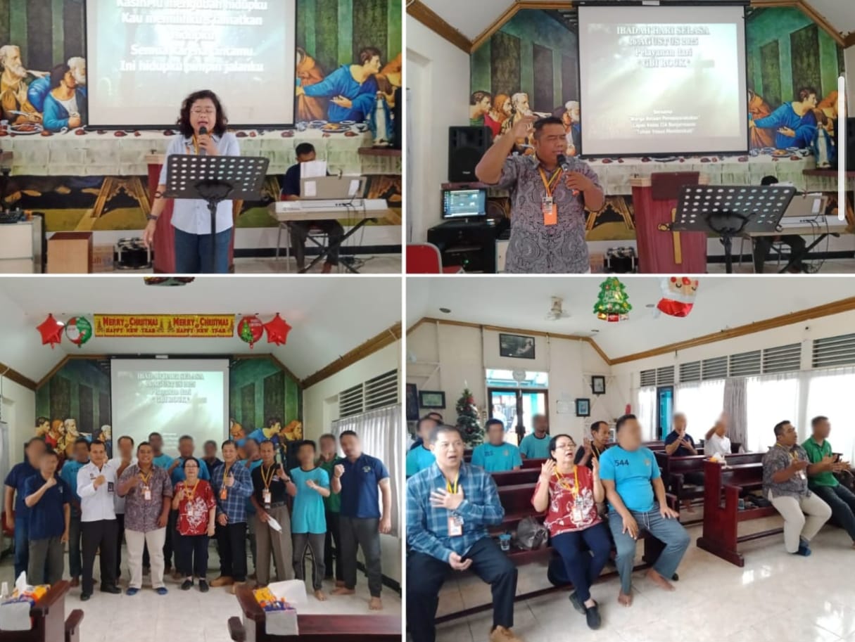 Gereja Oikumene Lapas Kelas IIA Banjarmasin pada Selasa (26/08) menggelar ibadah rutin bulanan pelayanan dari Gereja GBI Rock. Ibadah ini diikuti oleh seluruh Warga Binaan Pemasyarakatan (WBP) Kristiani bersama para pembina gereja.