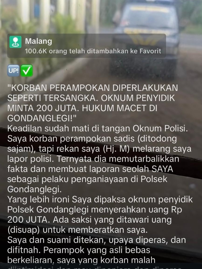 Kasus dugaan penganiayaan dan perampokan tersebut telah dilaporkan secara resmi ke Polsek Gondanglegi sesuai lokasi tempat kejadian perkara (TKP). Proses penyidikan saat ini masih berjalan dan dikabarkan telah memasuki tahapan lanjutan.