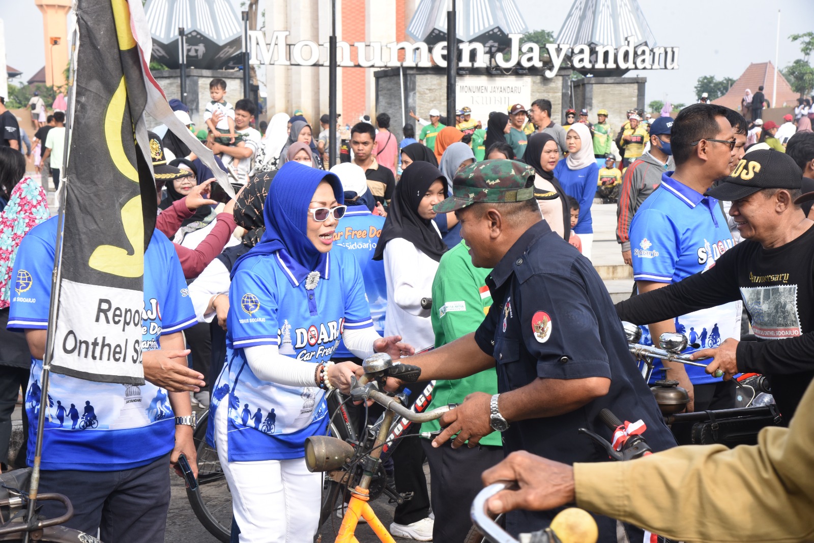 Car Free Day yang berlangsung hingga pukul 09.00 WIB tersebut dibuka secara resmi oleh Sekretaris Daerah Kabupaten Sidoarjo, Fenny Apridawati, di depan Monumen Jayandaru Alun-alun Sidoarjo.