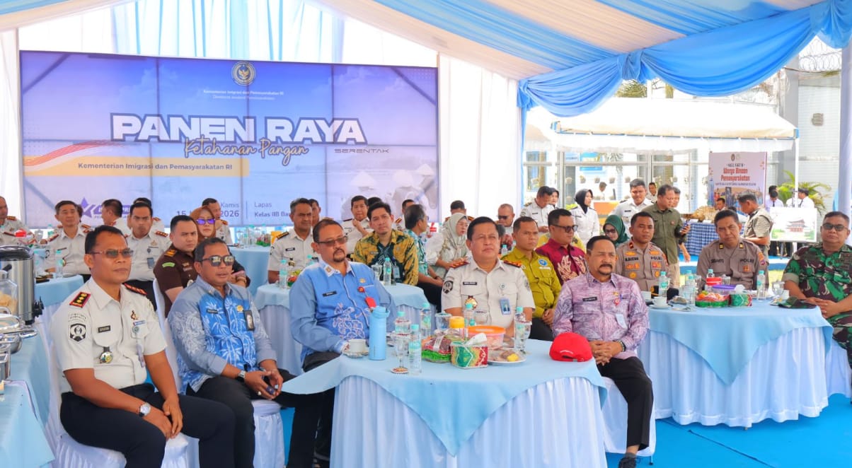 Kepala Lembaga Pemasyarakatan (Lapas) Narkotika Kelas IIA Karang Intan, Yugo Indra Wicaksi, menghadiri kegiatan Panen Raya Serentak Ketahanan Pangan Pemasyarakatan yang diselenggarakan oleh Kementerian Imigrasi dan Pemasyarakatan melalui Direktorat Jenderal Pemasyarakatan. bertempat di Lapas Kelas IIB Banjarbaru, Kamis (15/1). Kegiatan ini menjadi bagian dari program nasional dalam rangka mendukung ketahanan pangan sekaligus memperkuat kepedulian sosial Pemasyarakatan.