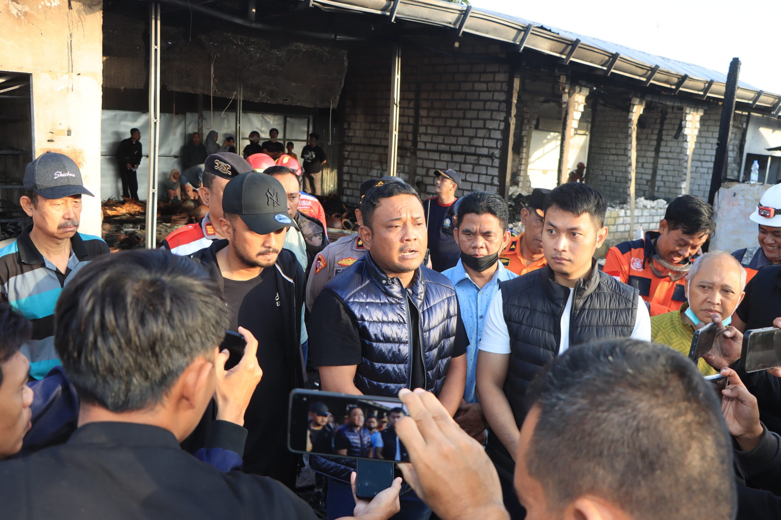 Tuban – Kapolres Tuban AKBP Alaiddin bersama Bupati Tuban Aditya Halindra Faridzky turun langsung meninjau lokasi kebakaran di Pasar Baru Tuban, Kamis (22/04) pagi.