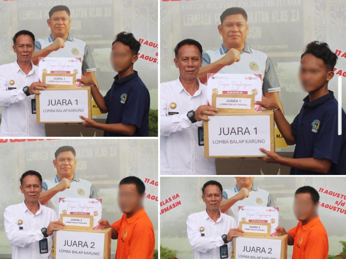 Suasana penuh kegembiraan kembali terasa di Lapas Kelas IIA Banjarmasin pada Selasa (19/08) pagi. Kasi Kegiatan Kerja (Giatja), Hazairin, menyerahkan secara langsung piagam penghargaan dan hadiah kepada para pemenang lomba balap karung yang digelar dalam rangkaian Pekan Lomba Kemerdekaan ke-80 Republik Indonesia.