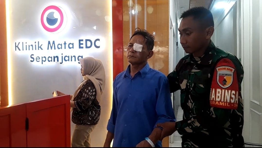 Kegiatan yang berlangsung di Klinik Mata EDC Sepanjang, Kecamatan Taman, Kabupaten Sidoarjo ini melibatkan Babinsa Koramil 0816/14 Taman, Serda M. Iswan, yang turut mendampingi pelaksanaan operasi sejak awal hingga selesai.