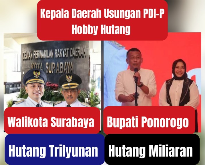 SURABAYA,–Fenomena kepala daerah yang diusung PDI-P kembali menuai kritik tajam dari berbagai elemen masyarakat. Setelah Walikota Surabaya mengajukan pinjaman daerah bernilai triliunan rupiah, kini Bupati Ponorogo juga mengikuti langkah serupa dengan mengajukan pinjaman ratusan miliar. Ironisnya, kebijakan berutang ini didukung penuh oleh DPRD Kota Surabaya maupun DPRD Kabupaten Ponorogo.