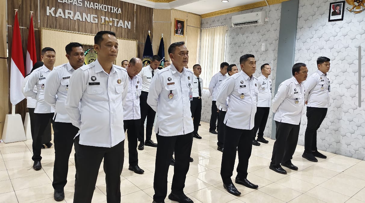 Bertempat di Aula Lapas, kegiatan diikuti oleh jajaran pejabat struktural, JFU, JFT, serta CPNS dengan penuh antusias. Kalapas Narkotika Karang Intan, Edi Mulyono, memimpin langsung partisipasi internal pegawai dalam apel tersebut guna memastikan tersampaikannya seluruh arahan pimpinan pusat.