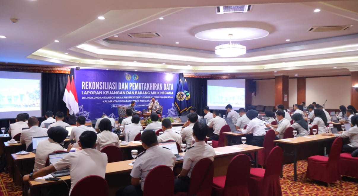 Kegiatan yang berlangsung selama tiga hari, Senin (26/1) hingga Rabu (28/1), di Swiss-Belhotel Borneo Banjarmasin ini diikuti oleh operator General Ledger dan Pelaporan (GLP) serta pengelola BMN dari seluruh Unit Pelaksana Teknis Pemasyarakatan se-Kalimantan Selatan.