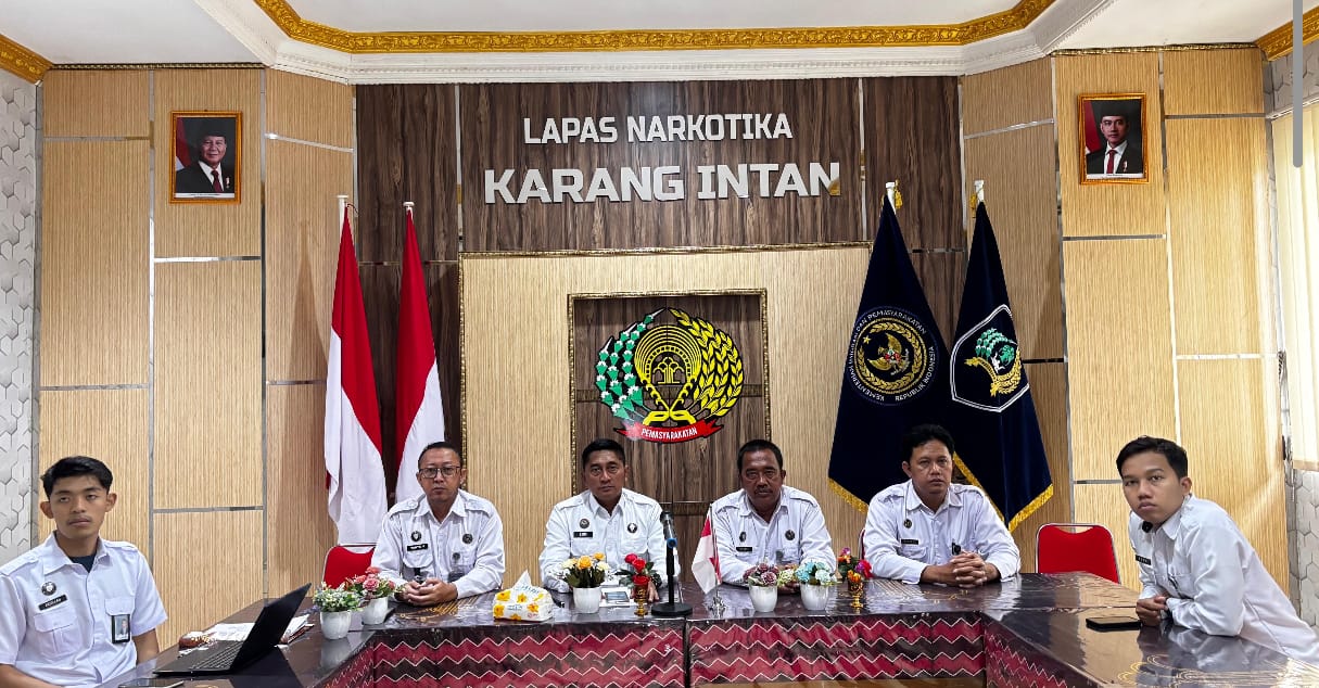 Lapas Narkotika Karang Intan mengikuti kegiatan Sosialisasi Pengetahuan tentang Pengadaan Barang/Jasa Pemerintah yang diselenggarakan secara virtual oleh Kementerian Imigrasi dan Pemasyarakatan, Selasa (26/8). Kegiatan ini diikuti langsung oleh Kalapas Narkotika Karang Intan, Edi Mulyono, beserta jajaran pejabat struktural dan staf terkait di aula lapas.