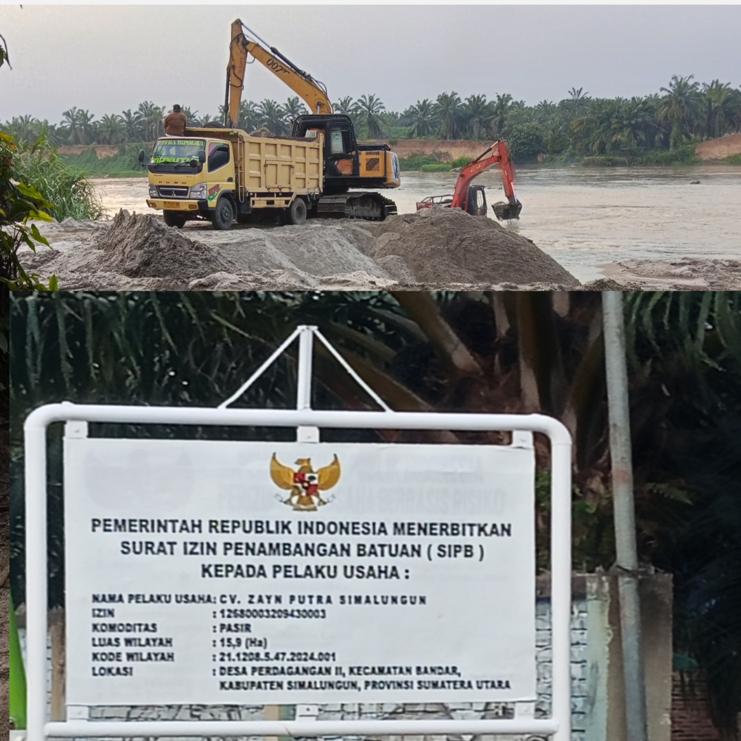 Temuan di lapangan menunjukkan adanya papan informasi yang mencantumkan “Surat Izin Penambangan Batuan (SIPB)” atas nama CV. Zayn Putra Simalungun.