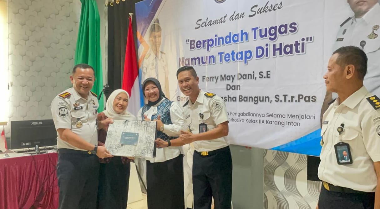 Suasana haru dan khidmat menyelimuti kegiatan pelepasan pegawai yang berpindah tugas di Lembaga Pemasyarakatan (Lapas) Narkotika Kelas IIA Karang Intan, Selasa (20/1). Kegiatan tersebut dilaksanakan di Aula Atas Lapas Narkotika Karang Intan sebagai bentuk penghormatan dan apresiasi atas pengabdian dua pegawai, yakni Ferry Maydani dan Geryn Kemal Pasha Bangun, yang akan melanjutkan tugas di satuan kerja baru.