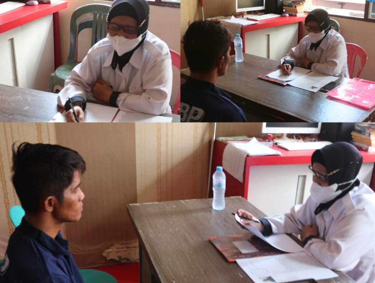 Pembimbing Kemasyarakatan Mulyani dari Balai Pemasyarakatan (Bapas) Kelas I Banjarmasin melaksanakan kegiatan wawancara Penelitian Kemasyarakatan (Litmas) terhadap Warga Binaan di Lapas Kelas IIA Banjarmasin. Kegiatan ini merupakan bagian dari proses pengusulan program integrasi seperti Cuti Bersyarat (CB), Cuti Menjelang Bebas (CMB), dan Pembebasan Bersyarat (PB).