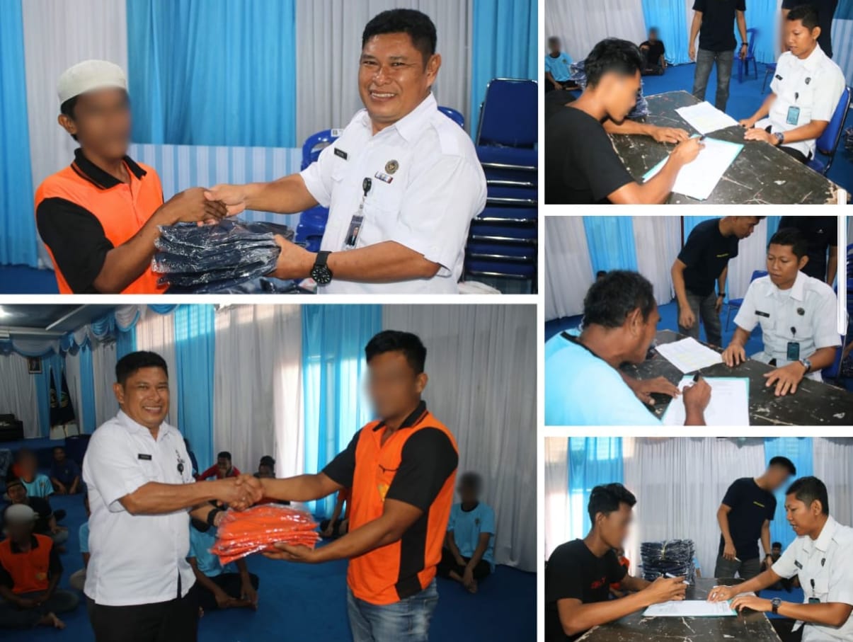 Lapas Kelas IIA Banjarmasin melaksanakan penyerahan pakaian harian bagi Warga Binaan Pemasyarakatan (WBP) sebagai bagian dari pemenuhan hak dan kebutuhan sehari-hari, Sabtu (9/8/2025).