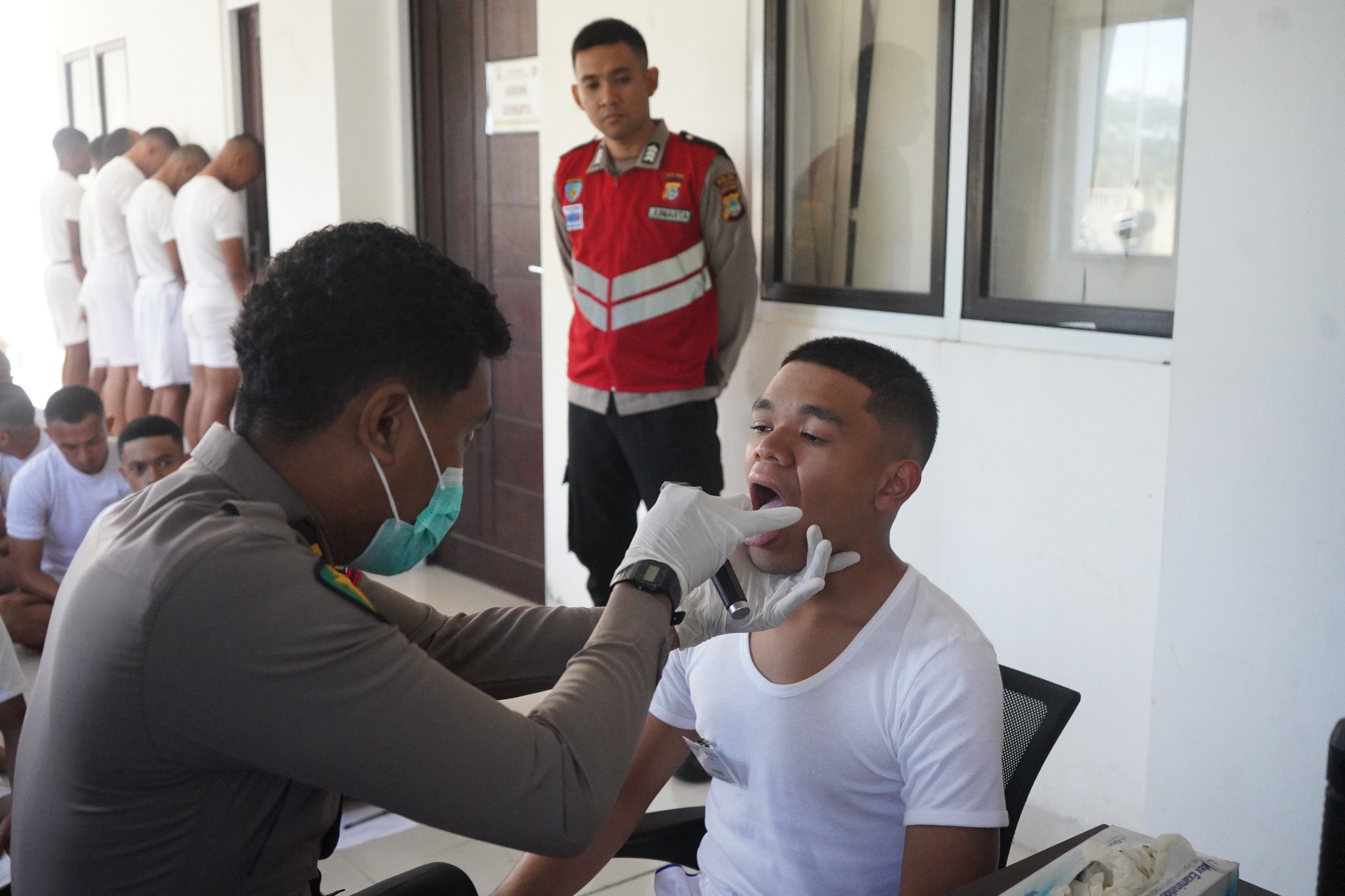 Pemeriksaan kesehatan dilaksanakan oleh Bidang Kedokteran dan Kesehatan (Biddokkes) Polda Papua Barat yang dipimpin langsung oleh Kabid Dokkes Polda Papua Barat Kombes Pol. dr. Iskandar, Sp.B, QHIA, MARS.,