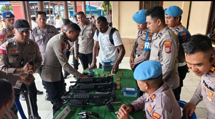Puluhan senjata api dari personil Polresta Manokwari dan Polsek Jajaran berhasil diperiksa oleh petugas dari Si Propam, Si Was, dan Baglog Polresta.