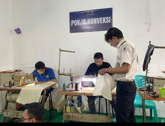 Salah satunya diwujudkan dengan keberhasilan memproduksi sebanyak 1.400 pcs cover tas yang dikerjakan langsung oleh Warga Binaan di Bengkel Kerja Lapas.
