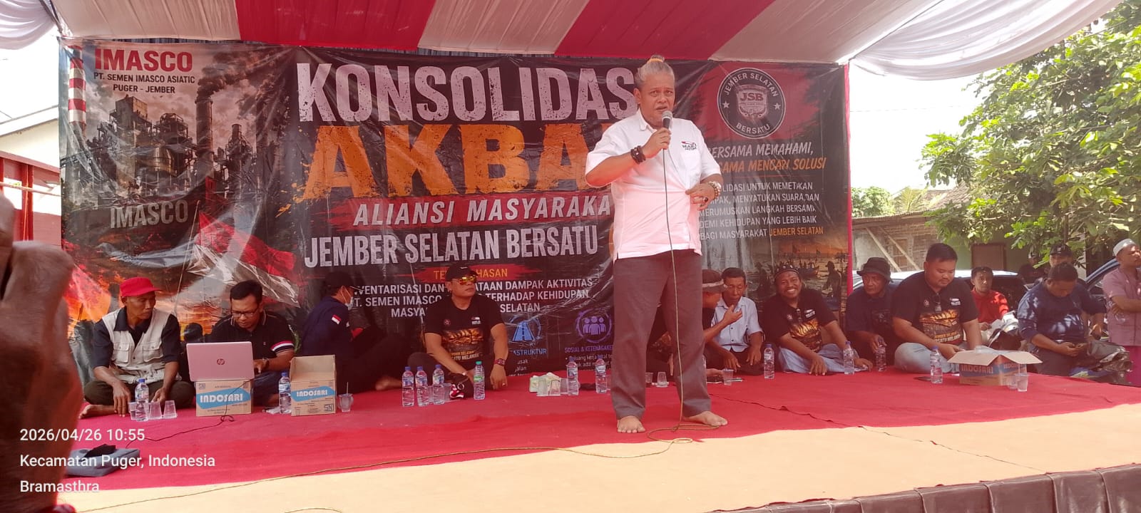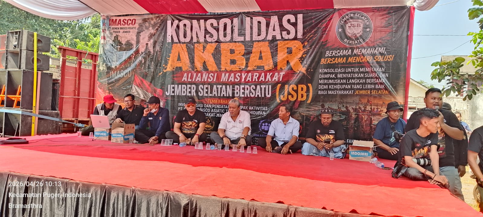 Jember — Gelombang protes warga terhadap aktivitas perusahaan IMASCO kian menguat. Ratusan masyarakat yang tergabung dalam gerakan Jember Selatan Bersatu menggelar konsolidasi bertajuk “Memahami Bersama, Mencari Solusi” di Jalan Sadengan, Puger, Kabupaten Jember, Minggu (26/04/2026).