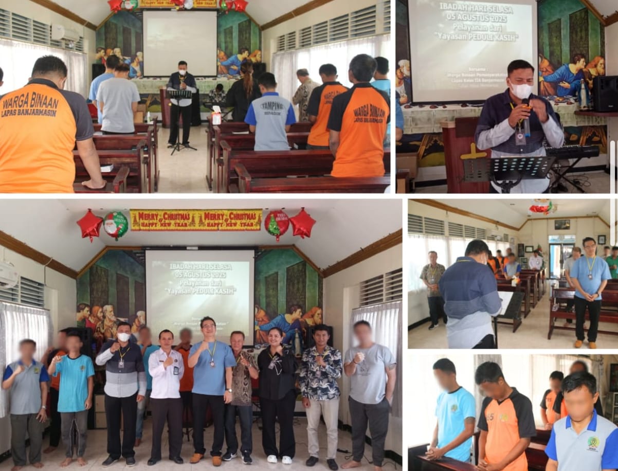 Gereja Oikumene Lapas Kelas IIA Banjarmasin kembali menjadi tempat berlabuhnya pengharapan rohani bagi warga binaan pemasyarakatan (WBP) beragama Kristiani, dalam kegiatan ibadah rutin bulanan yang digelar pada Selasa (05/08).