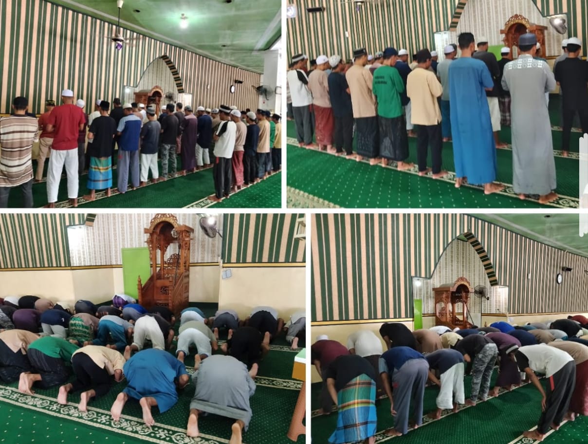 Pagi yang tenang di Masjid Baabud Taqwa Lapas Kelas IIA Banjarmasin diisi dengan aktivitas religius warga binaan. Seperti biasanya, Rabu (30/07), mereka melaksanakan Salat Dhuha berjamaah sebagai bagian dari kegiatan pembinaan kerohanian yang rutin dilaksanakan.