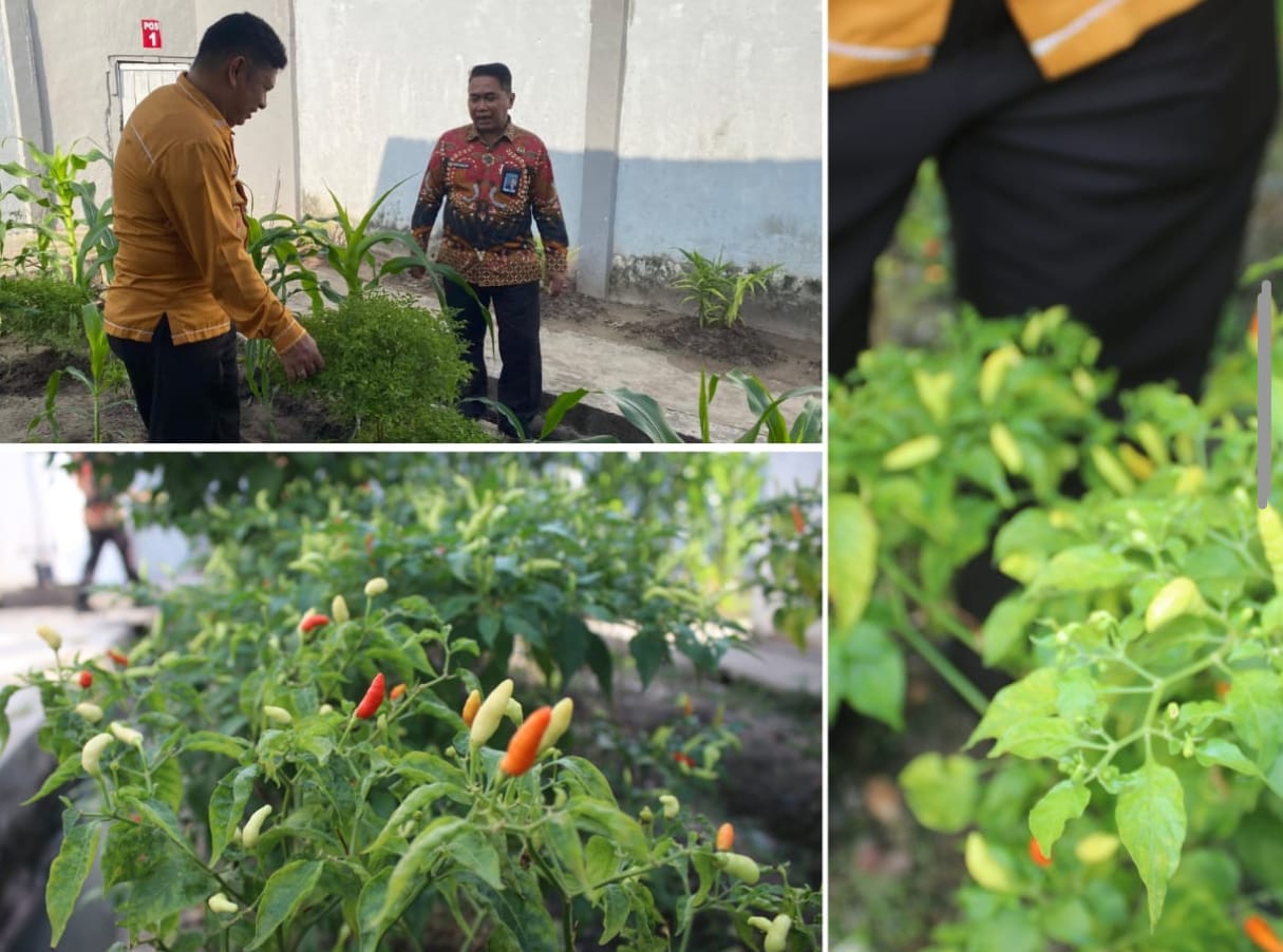 Rangkaian kontrol Kalapas Kelas IIA Banjarmasin, Akhmad Herriansyah, bersama Kasubag Tata Usaha, Hutan Triwibowo, pada Kamis (07/08), berlanjut ke kebun cabai yang juga berlokasi di area brandgang lapas.