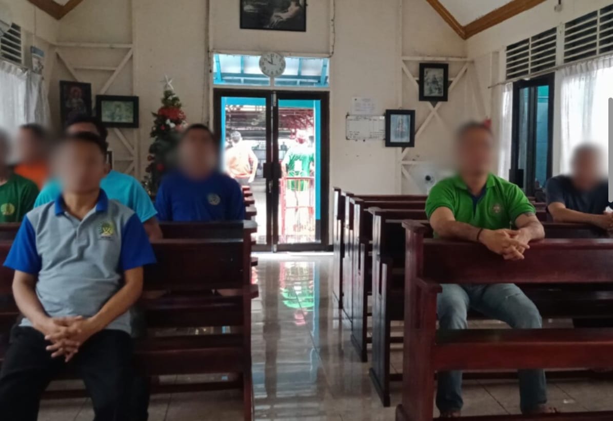 Suasana khusyuk terlihat di Gereja Oikumene Lapas Kelas IIA Banjarmasin, Senin (14/07), saat warga binaan nasrani mengikuti ibadah online serentak bersama unit pelaksana teknis (UPT) Pemasyarakatan di seluruh Indonesia. Kegiatan yang dilaksanakan mulai pukul 10.00 WITA ini merupakan bagian dari pembinaan kepribadian dan kerohanian bagi Warga Binaan Pemasyarakatan (WBP).