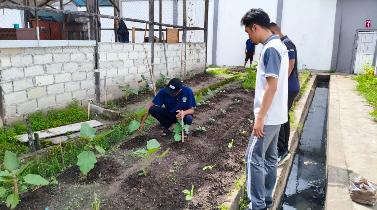 Petugas Giatja menjelaskan bahwa kegiatan ini merupakan bagian dari program pembinaan kemandirian yang bertujuan untuk menumbuhkan keterampilan bercocok tanam serta tanggung jawab terhadap hasil kerja.
